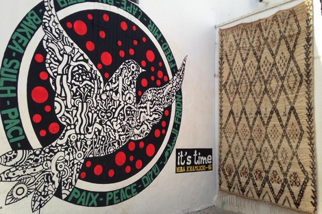 Lors de cette édition, plusieurs artistes marocains talentueux ont participé au changement annuel des rues d’Assilah. Parmi eux, l’artiste marocaine Hiba Khamlichi s’est différenciée des autres par son oeuvre minimaliste ne comportant qu’un seul mot. Seul mais fort et traduit en plusieurs langues afin de toucher un maximum de visiteurs. Il s’agit du mot : Paix.