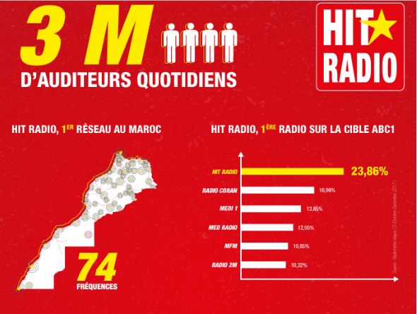 Hit Radio devient la deuxième radio privée la plus écoutée au Maroc et enregistre de très bonnes performances sur les grandes villes, précise un communiqué de la radio marocaine parvenu à Le Site info.