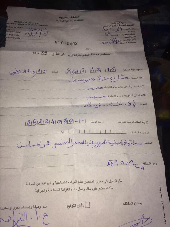 Découvrez la première contravention d’un piéton au Maroc (photo)