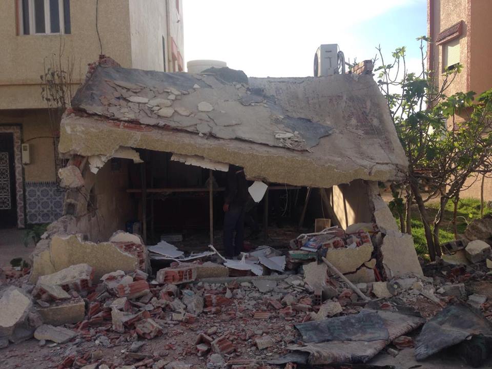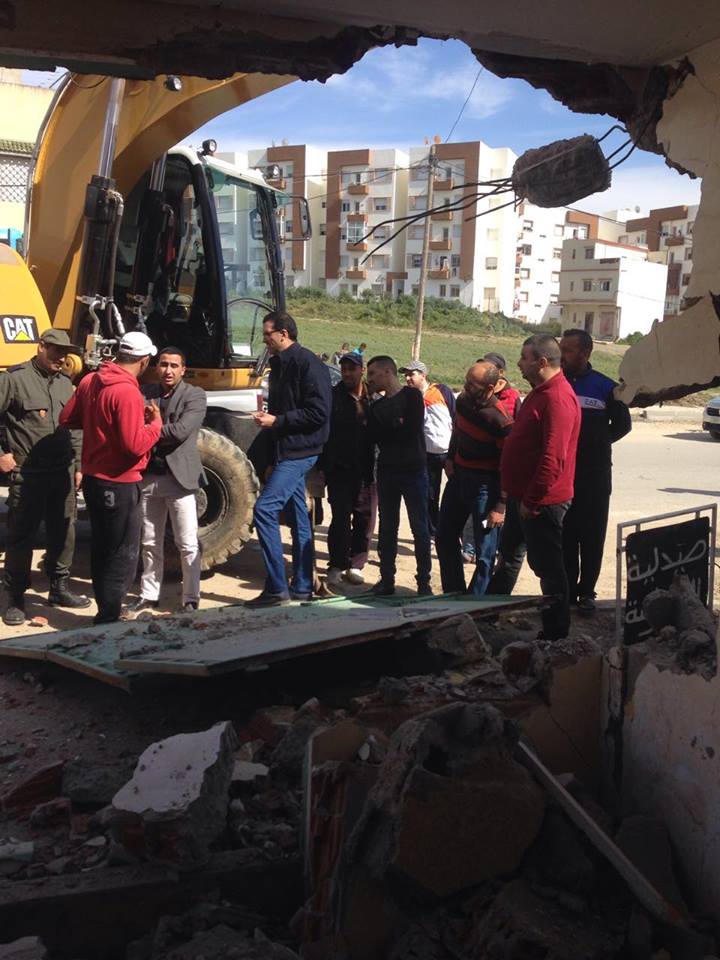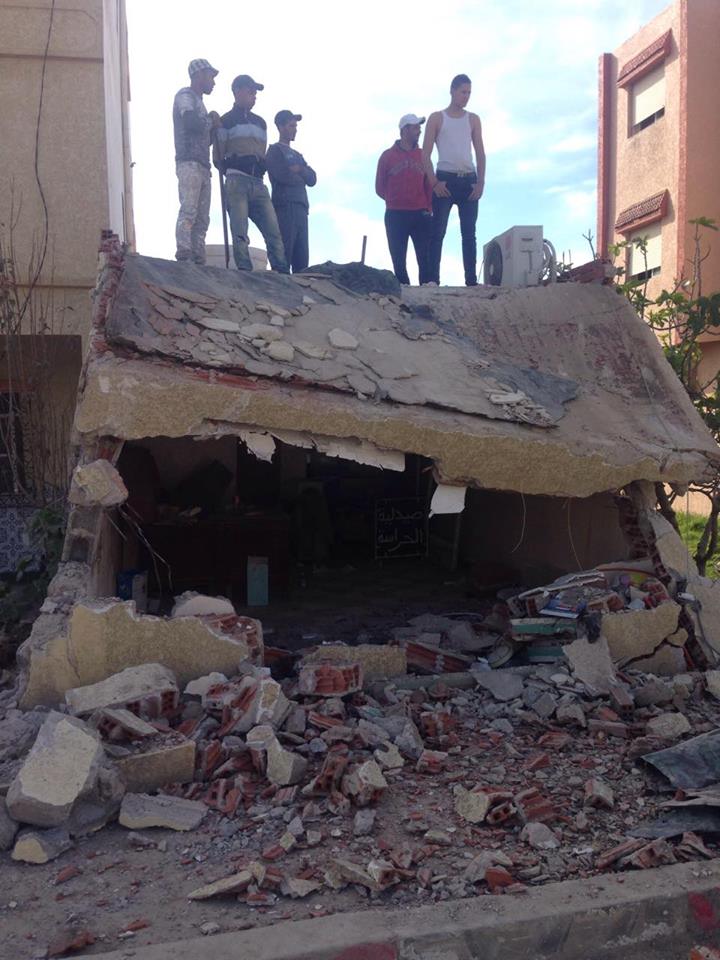 C’est à ce moment là que le Caïd a ordonné la démolition partielle de la pharmacie, et que ses hommes ont utilisé le trax qui a réussi à déstabiliser une bonne partie de la structure du bâtiment. Se contentant de ce qui lui restait de sa pharmacie, Tarek Bougnine a commencé tout de suite après à consolider la structure restante et à se préparer à retrouver une vie normale avec quelques mètres carrés en moins.