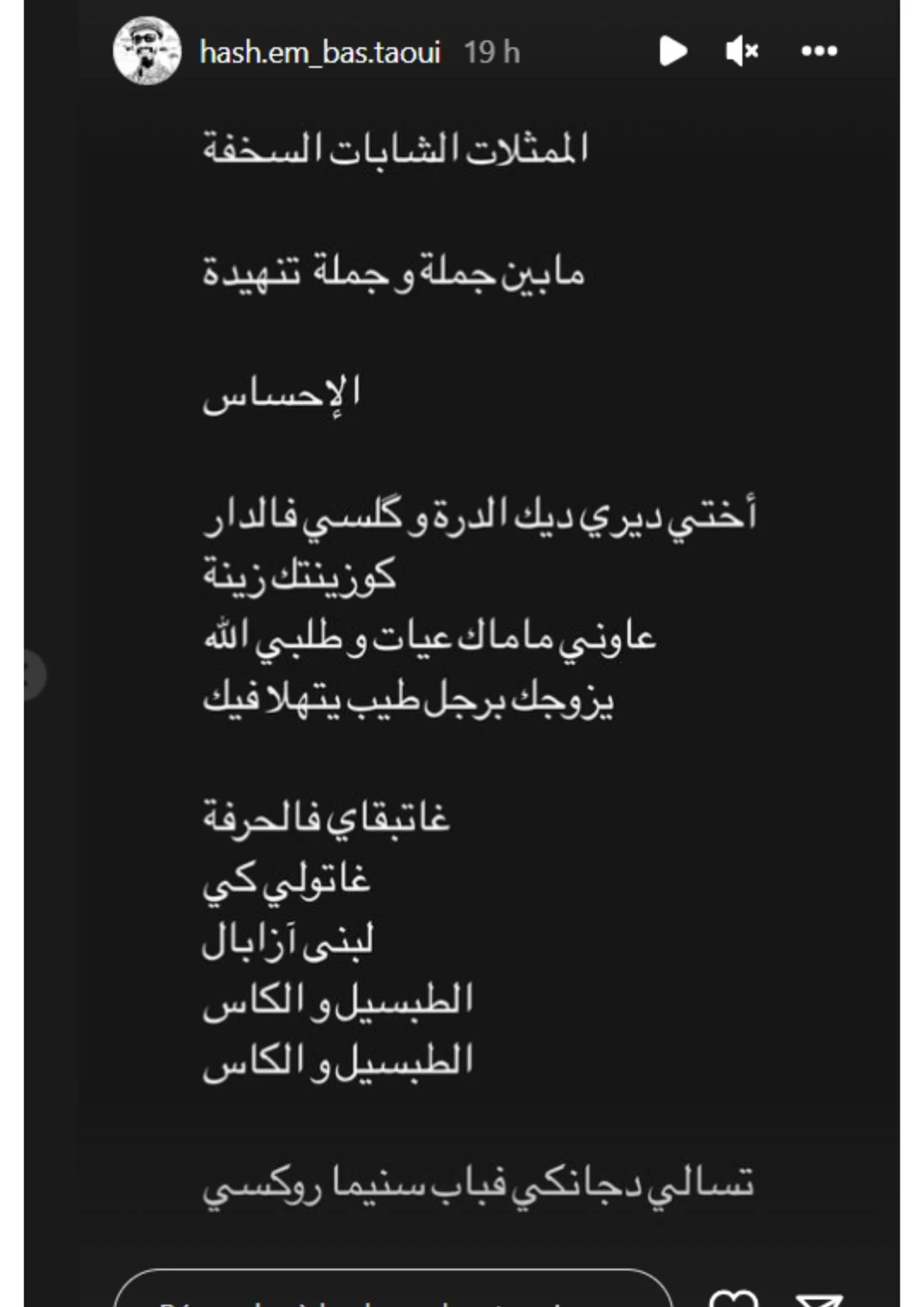 Critiques dont Hachem Bastaoui n’en a cure, assurément! Et vas-y aux « prêchi-prêcha » vaseux! Vas-y aux « conseils » de repentance de ces « brebis égarées » que sont les comédiennes et comédiens nationaux! Et c’est autour des jeunes actrices marocaines que « Cheikh Bastaoui » s’adresse pour leur montrer « le droit chemin », via son compte Instagram (un réseau social conçu par les « mécréants »? Ce n’est pas « haram »?).