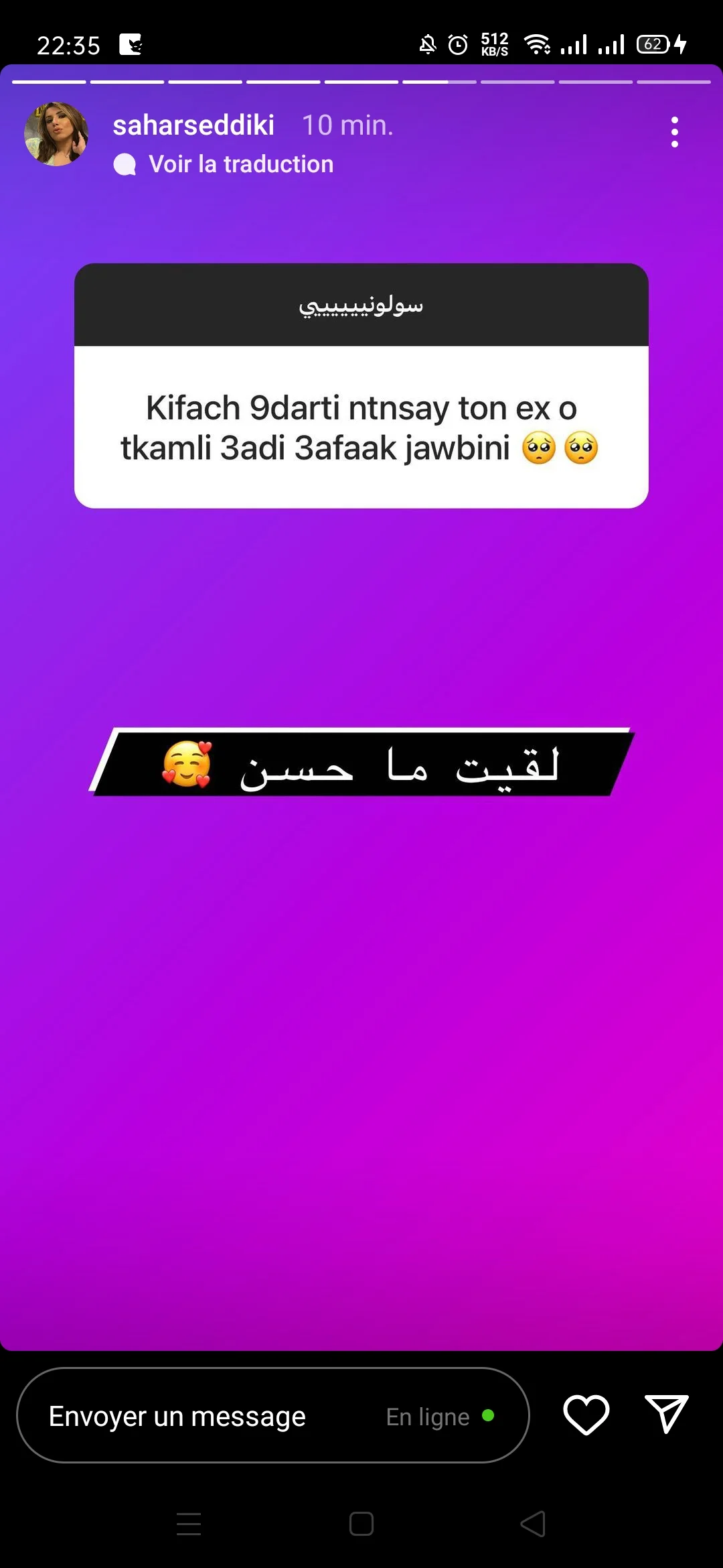 « Comment avez-vous pu vite oublier votre ex-époux et continuer à mener une vie normale? », a rétorqué l’admiratrice , très curieuse et se mêlant de ce qui ne la regarde pas: la vie privée des gens, qu’ils soient de simples citoyens ou des people. Et. La réponse de Sahar Seddiki, à cette curiosité déplacée, a été des plus concises et des plus claires: « J’ai rencontré mieux! ».
