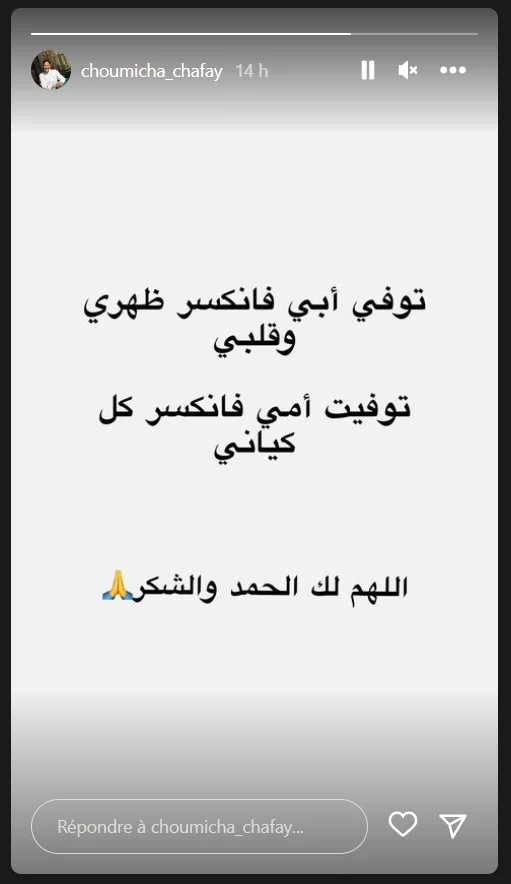 Le message émouvant de Choumicha après le décès de sa mère (PHOTO)