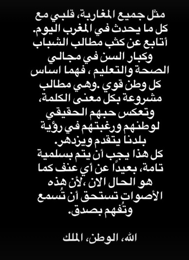 Nayef Aguerd a publié un message sur son compte Instagram pour exprimer sa solidarité avec les jeunes qui manifestent actuellement pour réclamer une réforme des secteurs de l’Education et de la Santé.