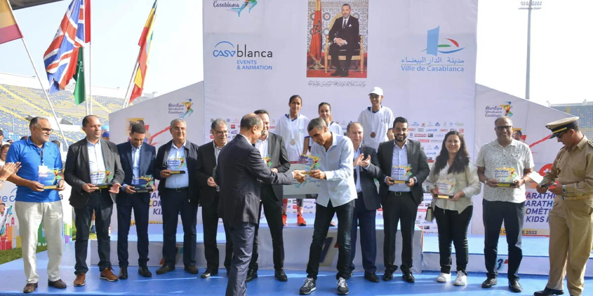 Aux vainqueurs du marathon, les trophées ont été remis par M. le Wali de Casablanca, M. le Gouverneur de la Préfecture des Arrondissements de Casablanca-Anfa, M. le Gouverneur Directeur des Affaires Générales, M. le Directeur de l’Académie Régionale de l’Education et de la Formation, M. le vice-président chargé de la Culture et des Sports de la ville de Casablanca, M. le Président de l’Arrondissement Maarif, Mme la Représentante de la Région de Casablanca-Settat, M. le Directeur Général de la Société de Développement local Casablanca Events & Animation, ainsi que d’autres officiels.