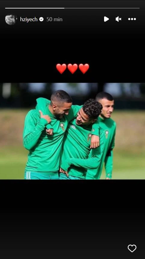 De son côté, Hakim Ziyech a partagé une photo de lui en compagnie de Harit, lors d’une accolade amicale.
